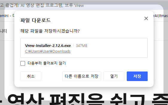 영상편집 AI 브루(Vrew) 홈페이지에서 프로그램을 다운 받아 설치합니다.