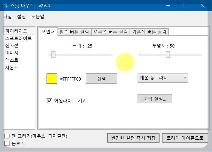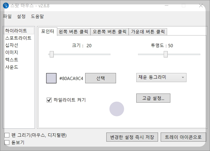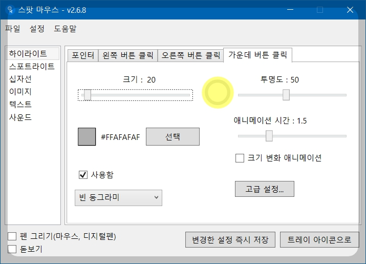 8. 스팟 마우스 옵션 설정(포인터)