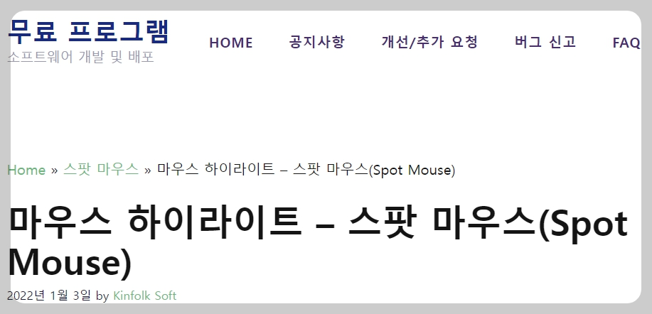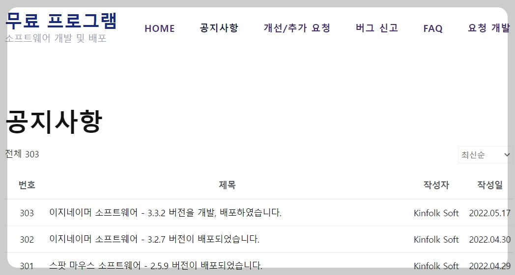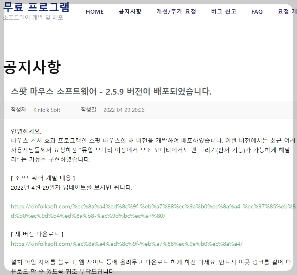 작성하는 날짜 오늘(2022.11.14) 기준으로 공지사항 301번의 스팟마우스 소프트웨어 - 2.5.9 버전을 클릭