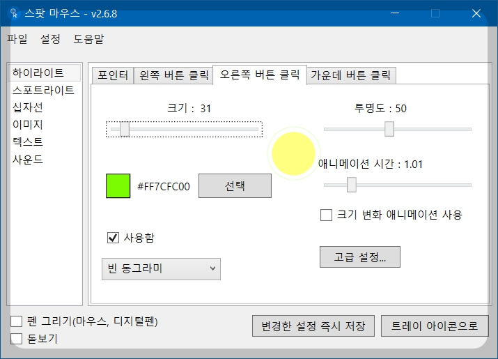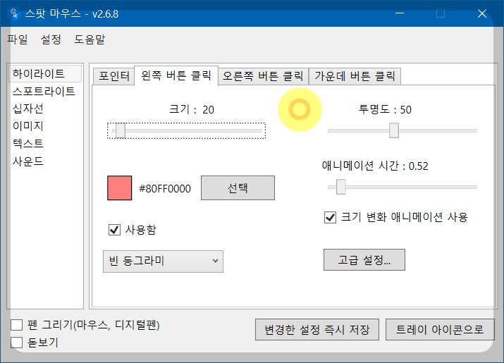 8. 스팟 마우스 옵션 설정(포인터)