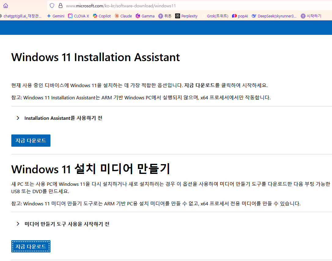1. Windows 11 다운로드 (https://www.microsoft.com/ko-kr/software-download/windows11)