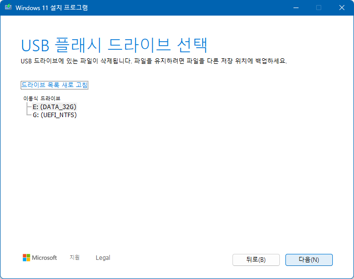 3. 윈도우11 설치 파일을 USB에 저장