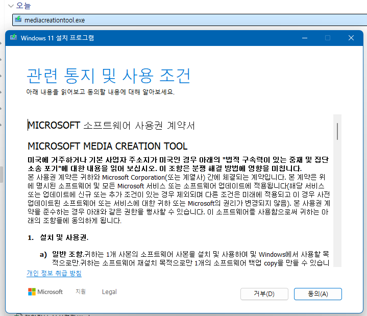 2. 다운 받은 mediacreationtool.exe 클릭
