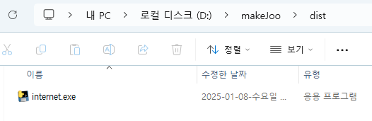 4. dist 폴더 안에 exe 파일이 만들어져 있습니다.