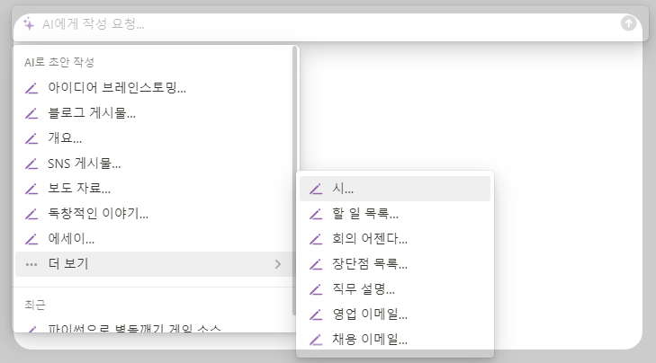 스페이스 바를 누르면 AI기능이 나옵니다.